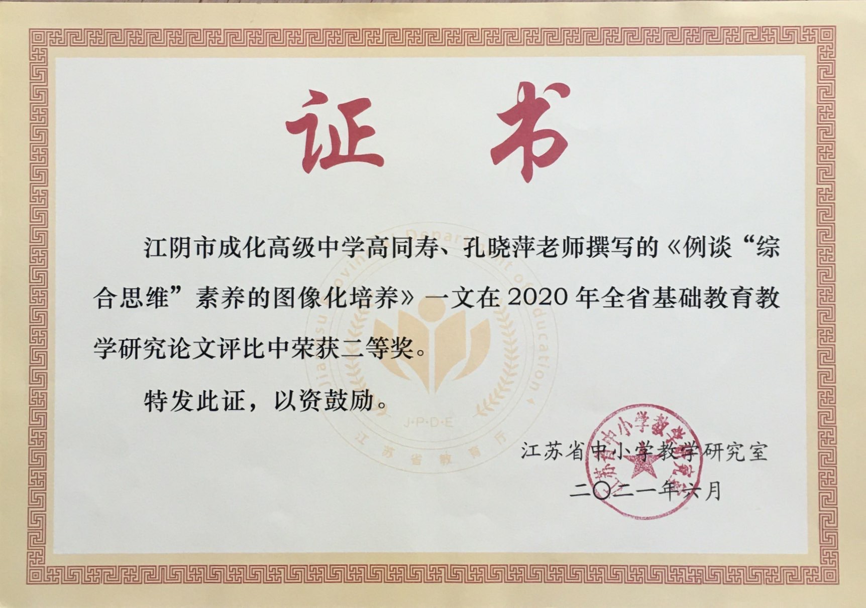 评比部门:江苏省中小学教学研究室