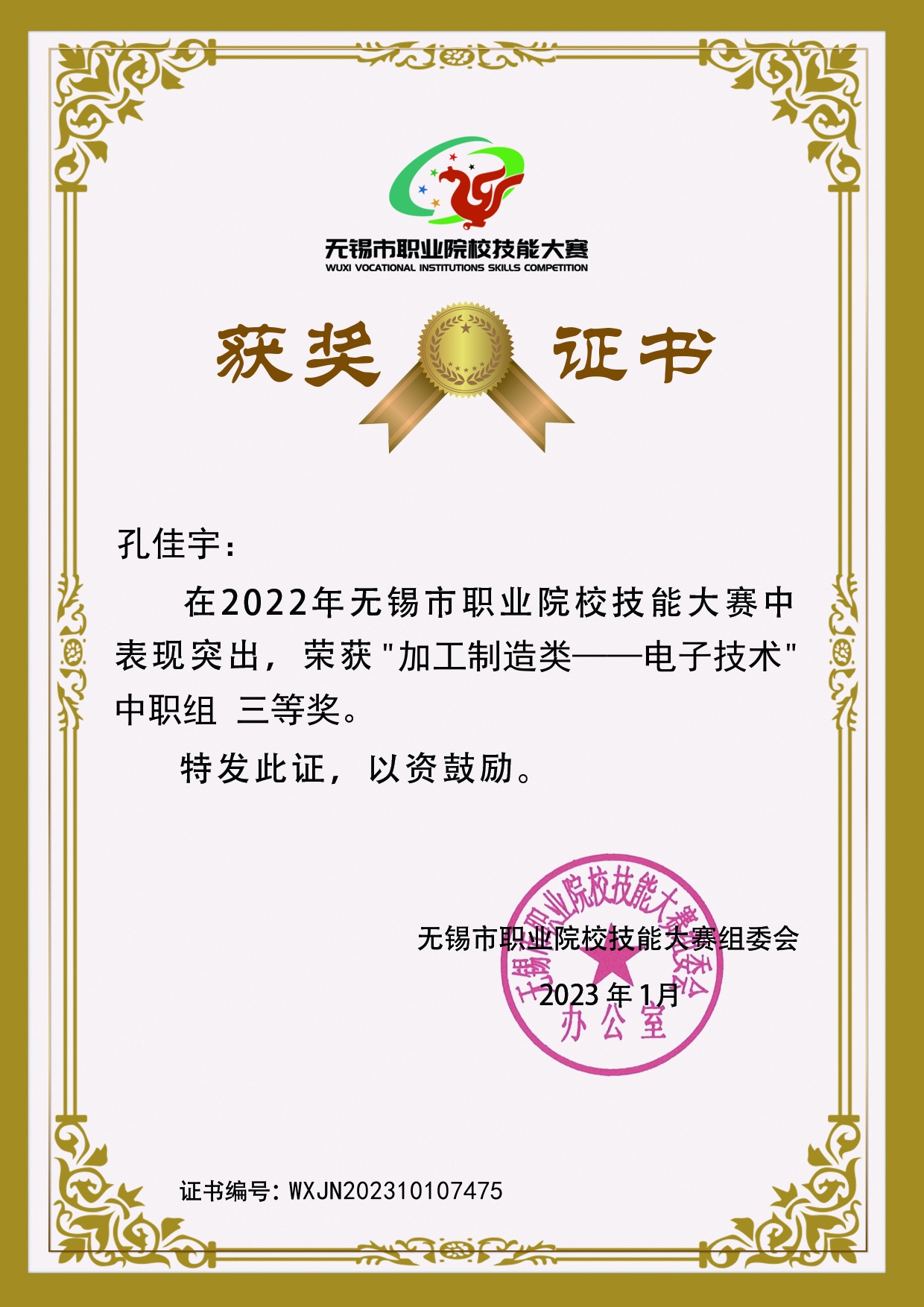 获奖类别:技能大赛
