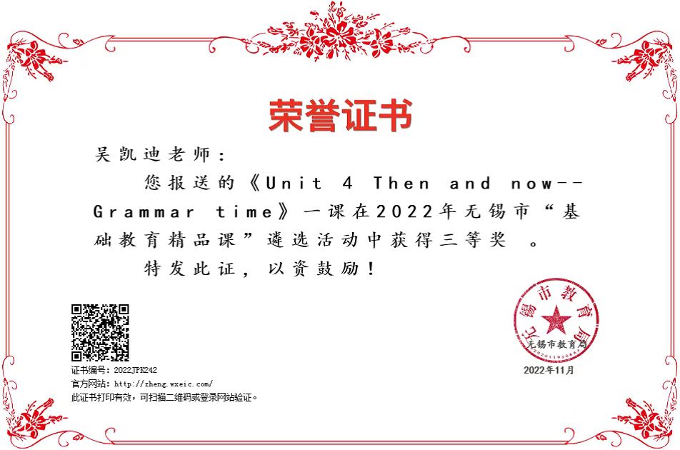 吴凯迪老师在无锡市“基础教育精品课”中获奖啦~~