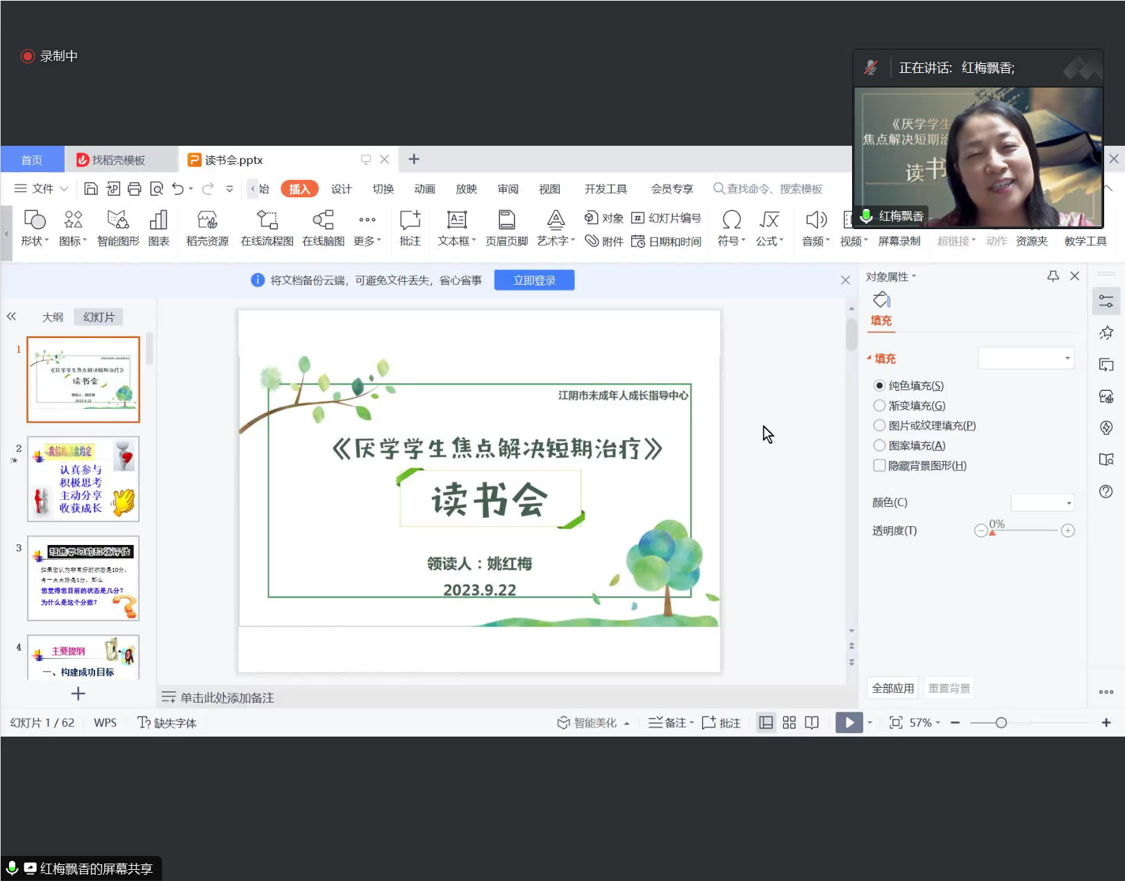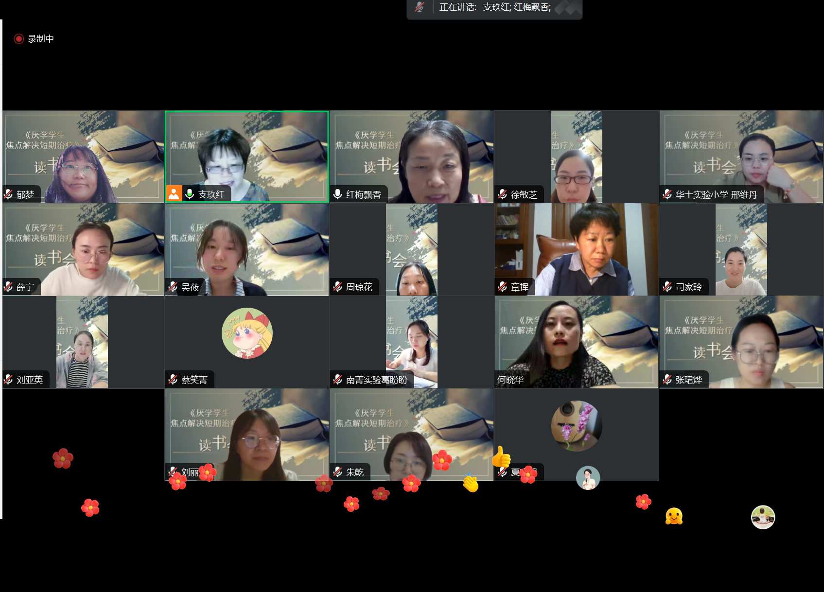 研讨促发展,读书凝素养,在9月22日,江阴市支玖红心理名师工作室开展了《厌学学生焦点解决短期治疗——预防辍学及助力学生成功之道》这本书的线上读书交流会,由江阴市未成年人成长指导中心姚红梅老师带领我们一起解读与探讨本书的第四章节内容。