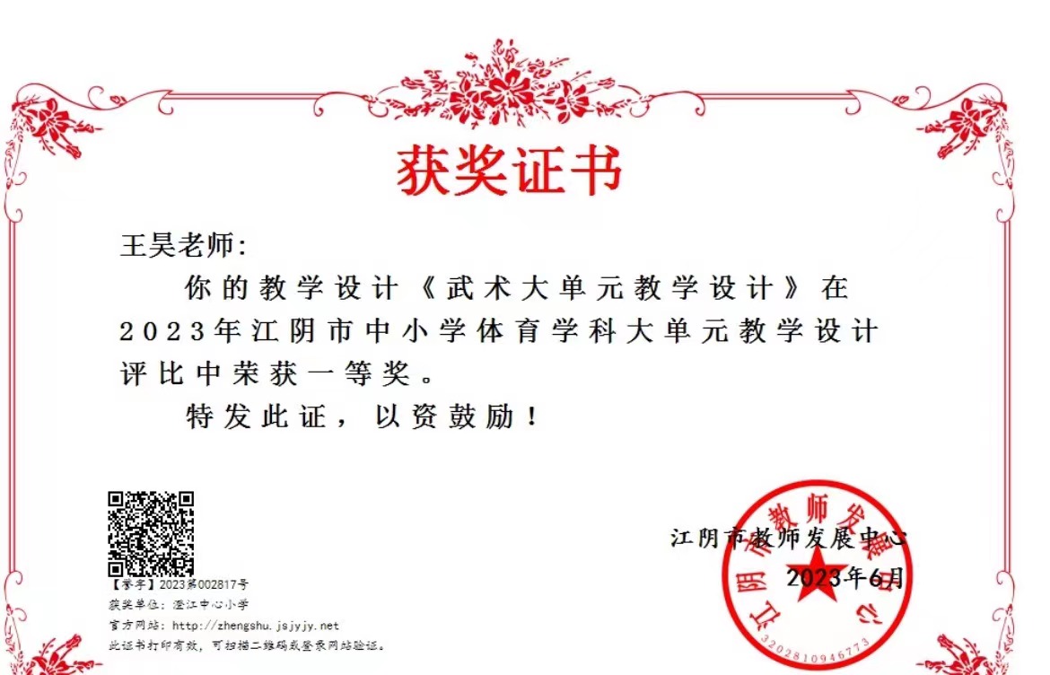 江阴市中小学体育学科大单元教学设计一等奖 2023-09-26