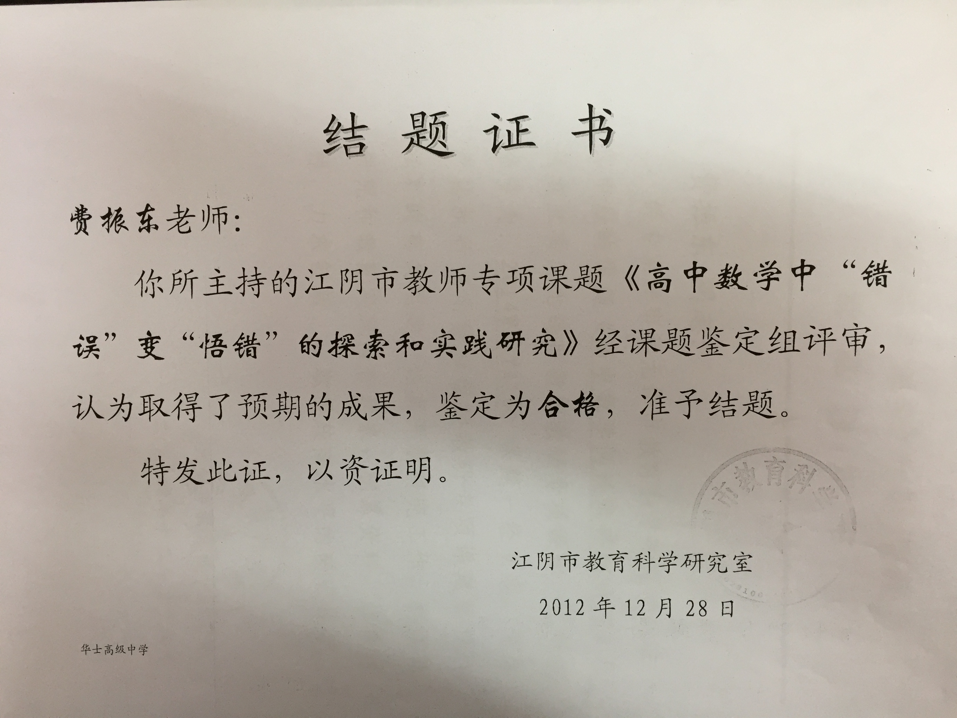 江阴市课题结题