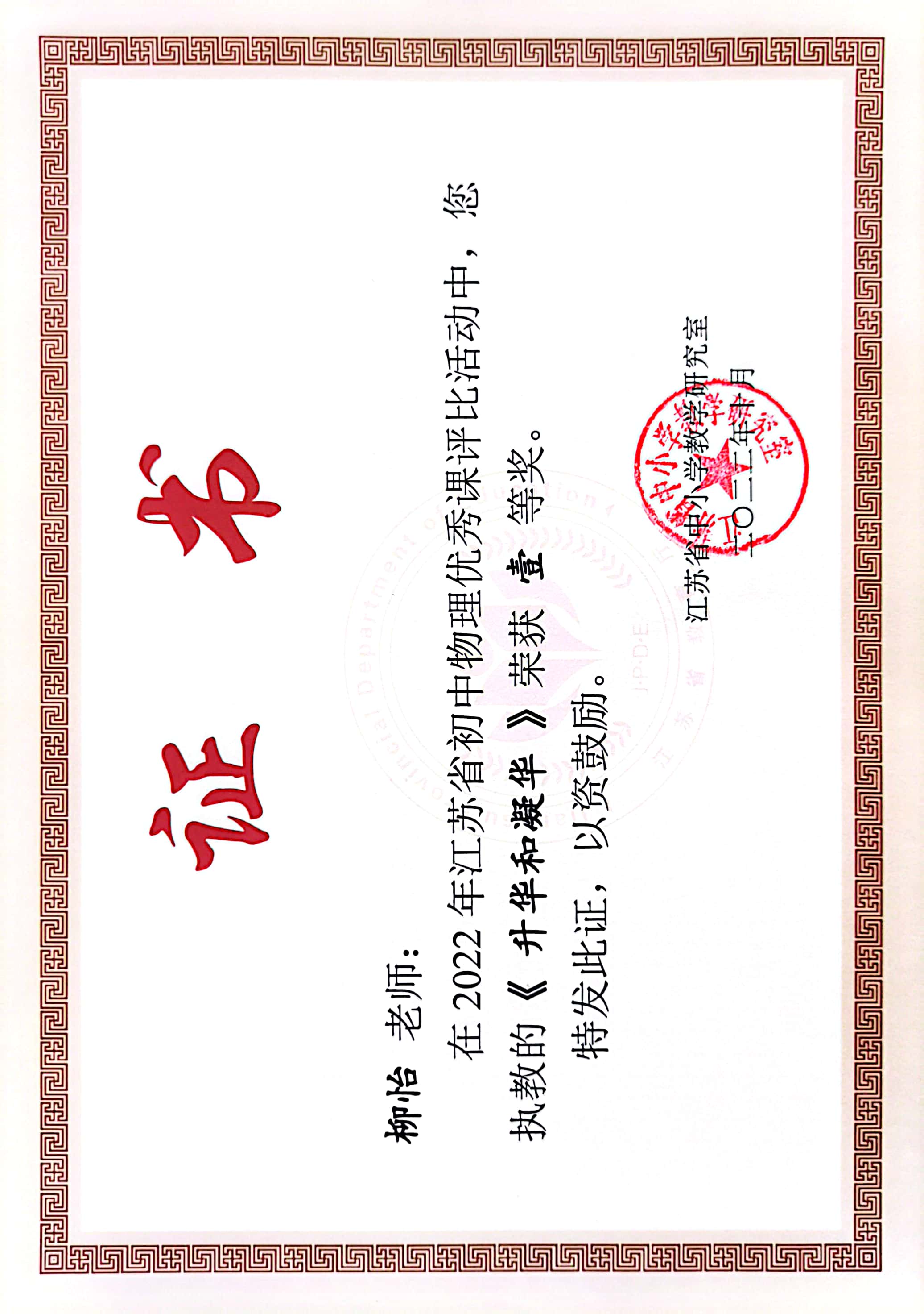 学员柳怡老师获江苏省优质课大赛一等奖第一名