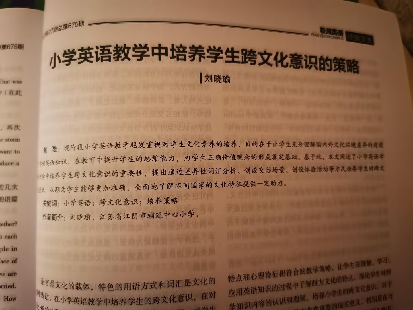 [1]丁小风,窦宁.小学英语课堂中文化意识的培养策略[J].英语广场,2022,No.211(31):121-124.