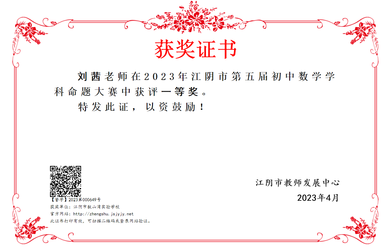 刘茜 江阴市命题大赛一等奖