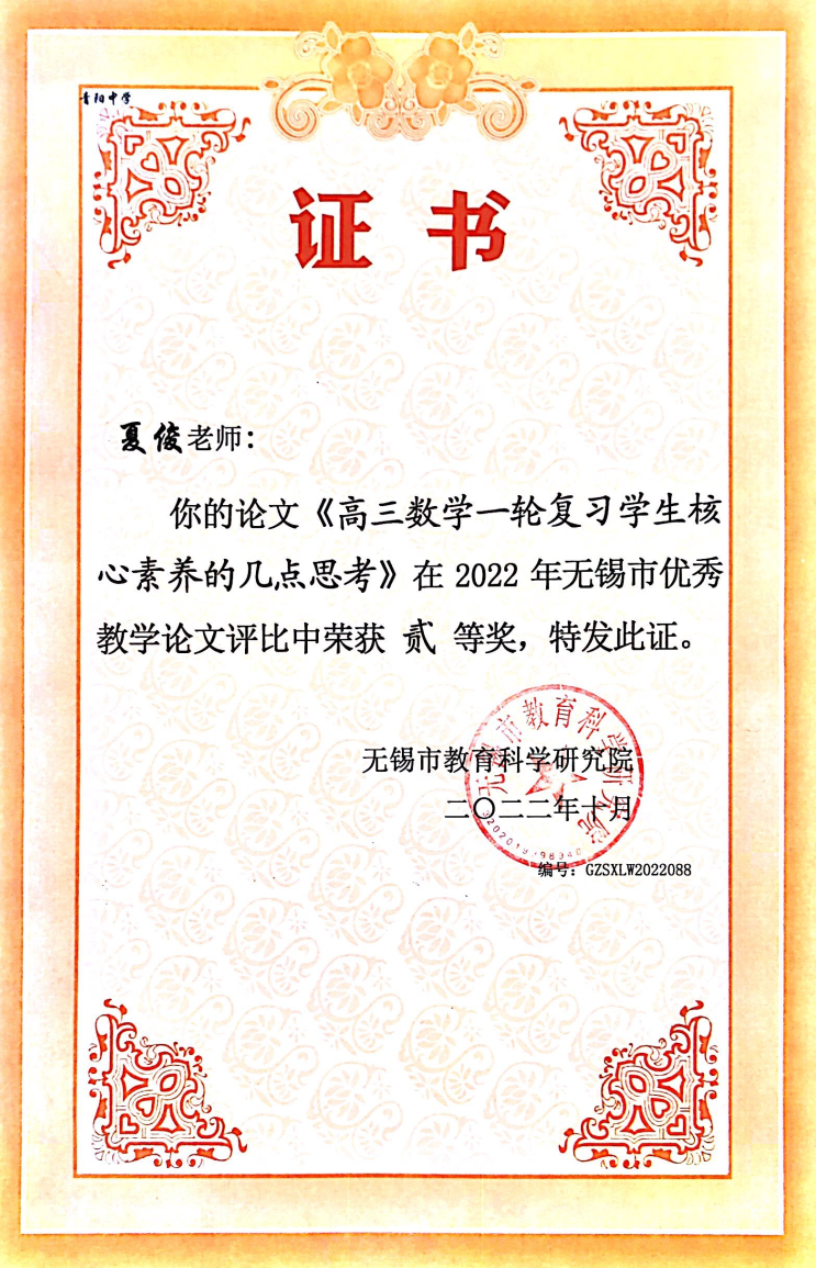 杨同官工作室成员—夏俊老师无锡市论文评比二等奖 2023-10-02