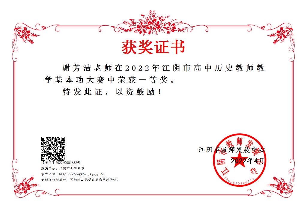 获奖类别:江阴市高中历史教师教学基本功大赛