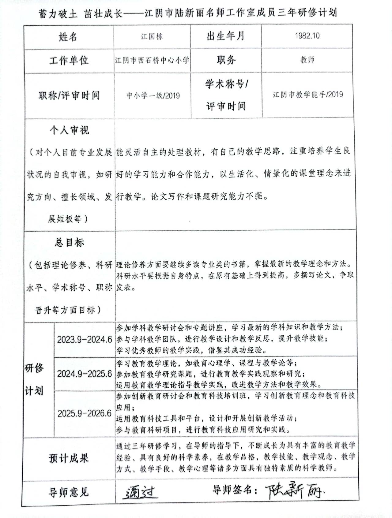 科学 西石桥 江国栋——陆新丽名师工作室学员研修计划