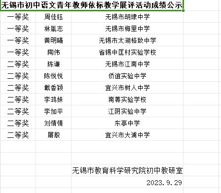 初中语文青年教师依标教学展评活动二等奖
