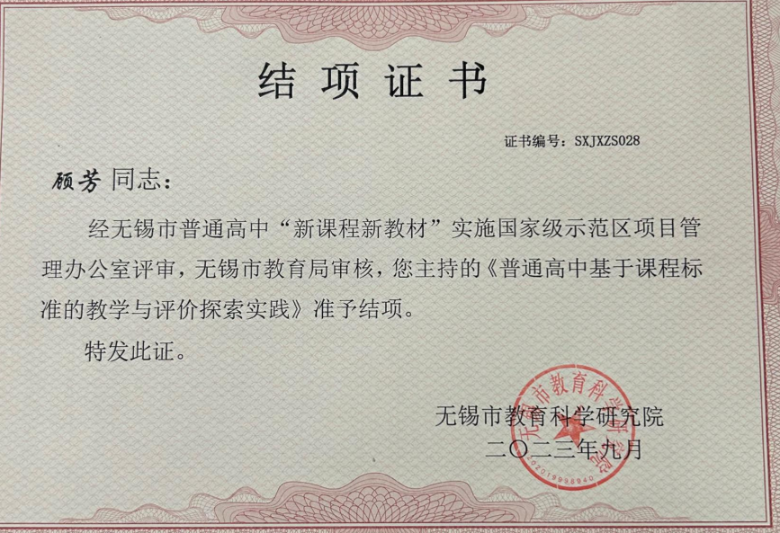 杨晓丽高中政治名师工作室成员顾芳课题结项