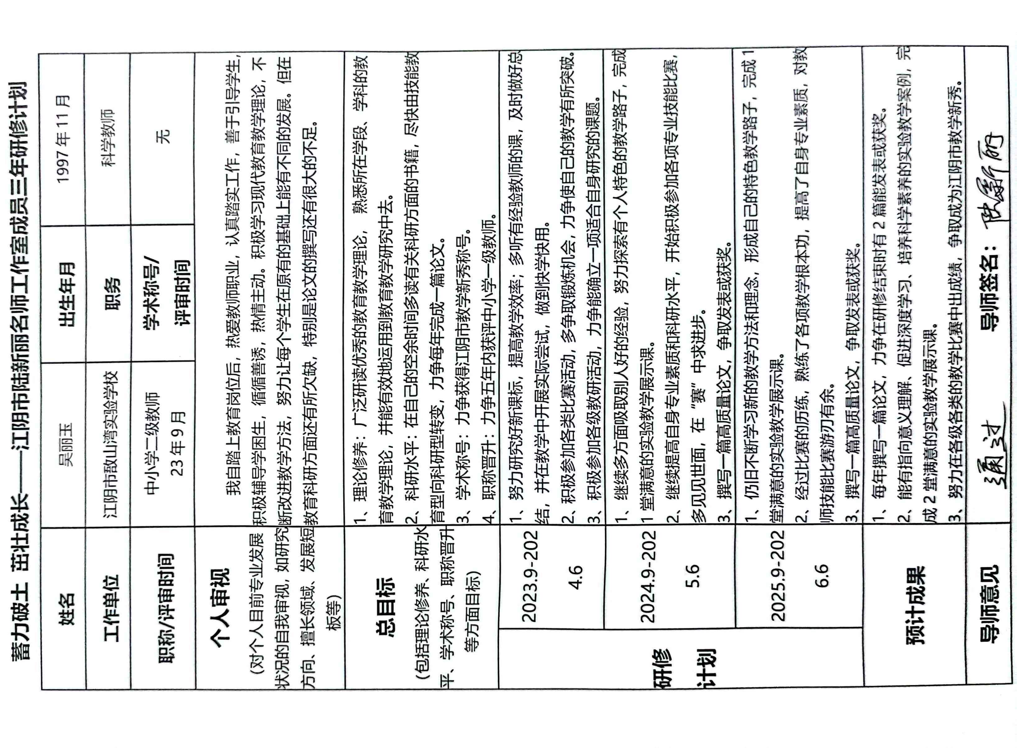科学 敔山湾实验学校 吴丽玉——陆新丽名师工作室学员研修计划