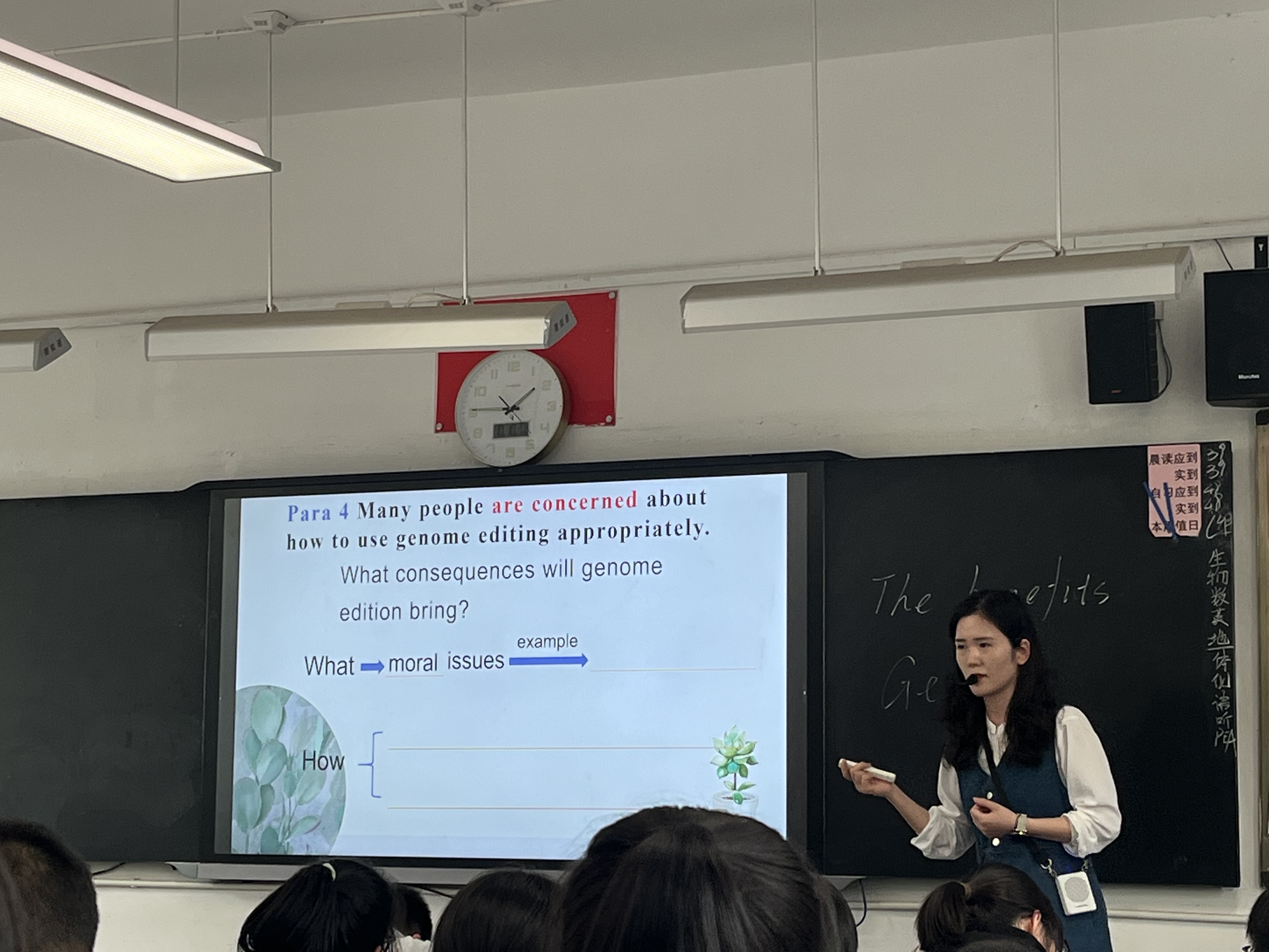 2023年10月10日,陈露露老师在江苏省江阴长泾中学高二(4)班上了一节校内展示阅读课,题目为:the future in the genes. 该课分为导入、读前、读中和读后四个环节,陈老师带领学生围绕基因宝宝的话题展开了热烈的讨论,充分训练了思维品质。