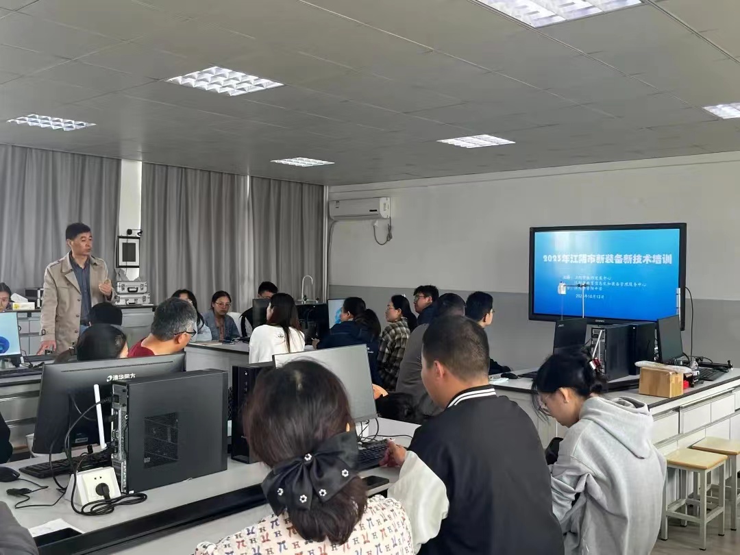 2023年10月13日,为了推动中小学物理实验教学改革,让现代新兴技术更好服务于一线教学,全面提高老师的实验教学水平,江阴市教师发展中心教育信息化和装备管理中心朱晓洪主任安排初高中骨干教师参加了新装备新技术的培训活动,江阴市教师发展中心胡生青也带领其名师工作室成员参与了本次活动,地点在江阴市青阳中学,内容是数字化传感器(PASCO)的初步应用。近三小时的培训活动,有理论、有实操、有互动,干货满满,让老师们在实践中提升实验操作技能。本次活动分上下午两组进行,上午高中组,下午初中组。