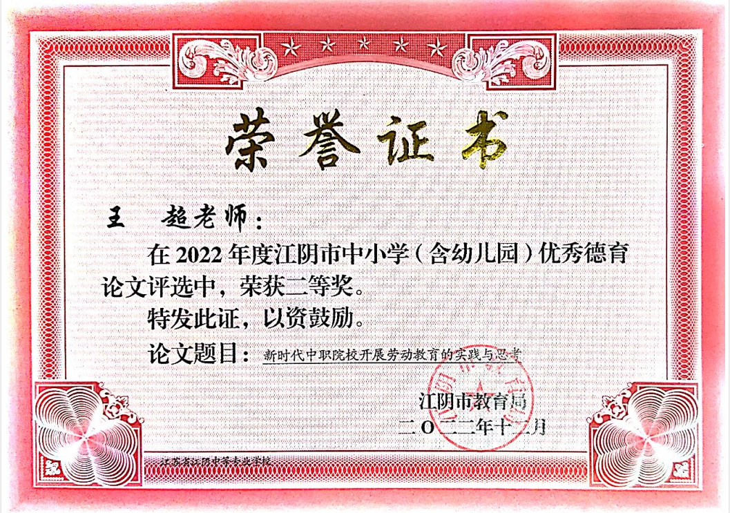 王超江阴市中小学优秀德育论文二等奖 2023-10-18