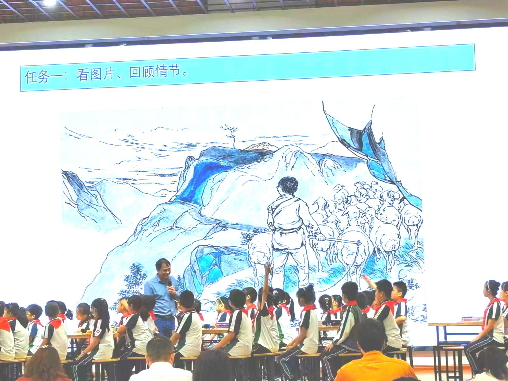 上午第三节课,无锡市梁昌辉言语实践名师工作室成员、江阴市季勇名师工作室主持人、月城实小季勇老师带来了《小英雄雨来》交流分享课。季老师设置了四个言语实践任务,巧妙地抓住“跳水”这一在全书中多次出现的事件,带领学生在比较、发现、情节创编等言语实践中认识雨来这一英雄,体会雨来由一个小调皮在故事中的成长,并在环环相扣的任务中与雨来达成共情,激发爱国热情,多方面完成了学科育人的价值。