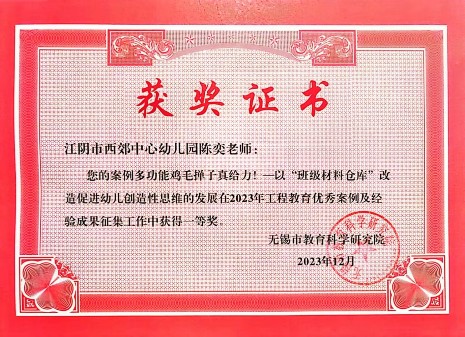 陈奕老师在2023年工程教育优秀案例及经验成果征集比赛中荣获无锡市一等奖 2023-12-18