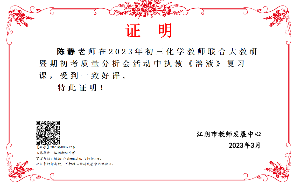 网站类目:课堂实录 活动级别:县级 活动类别: 执教姓名:陈静 所在单位:江阴市教师发展中心 执教时间:2023-03-23 执教地点:夏港中学 执教内容:溶液 参加对象:初三化学教师