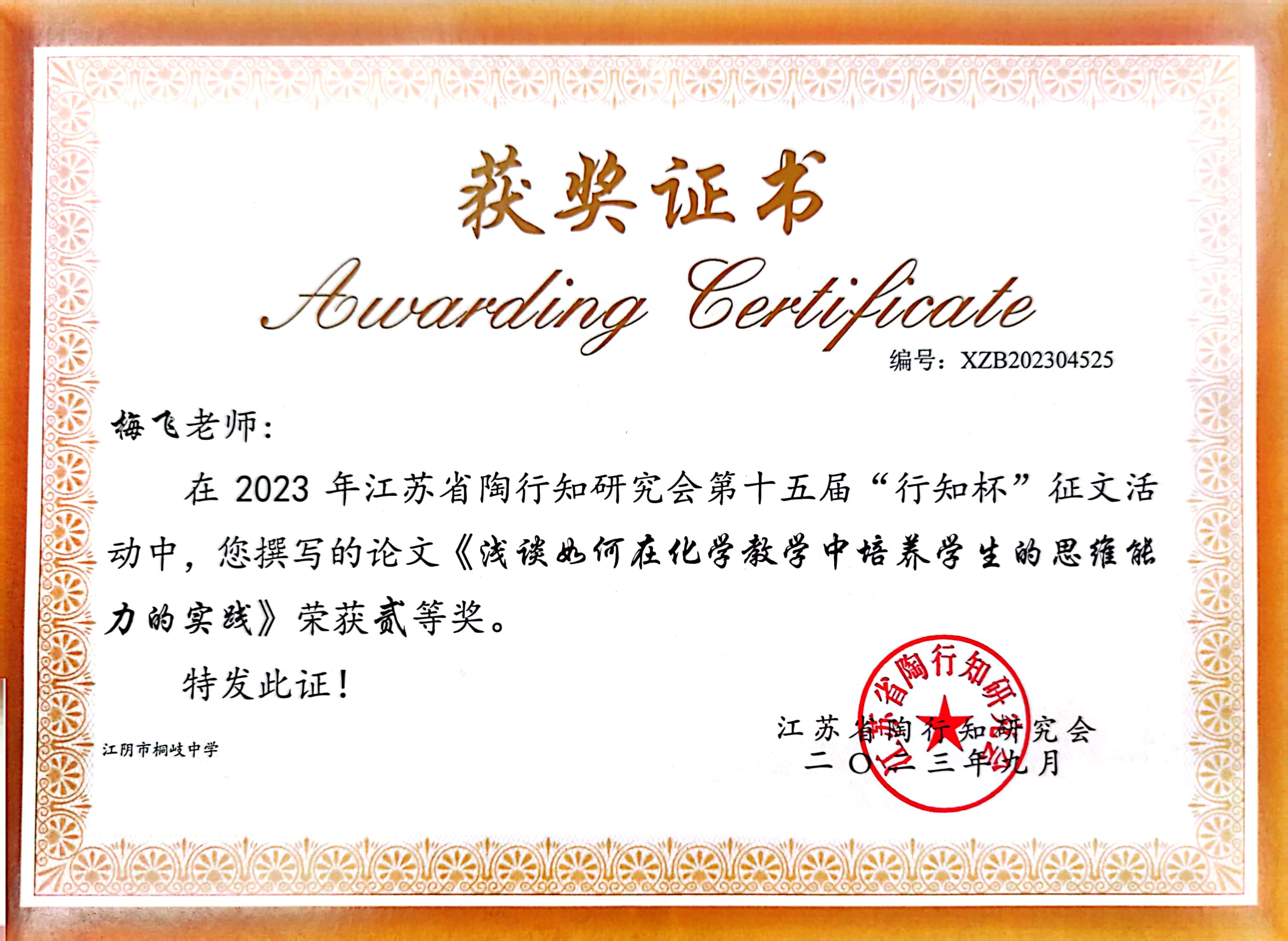获奖时间:2023-09-22