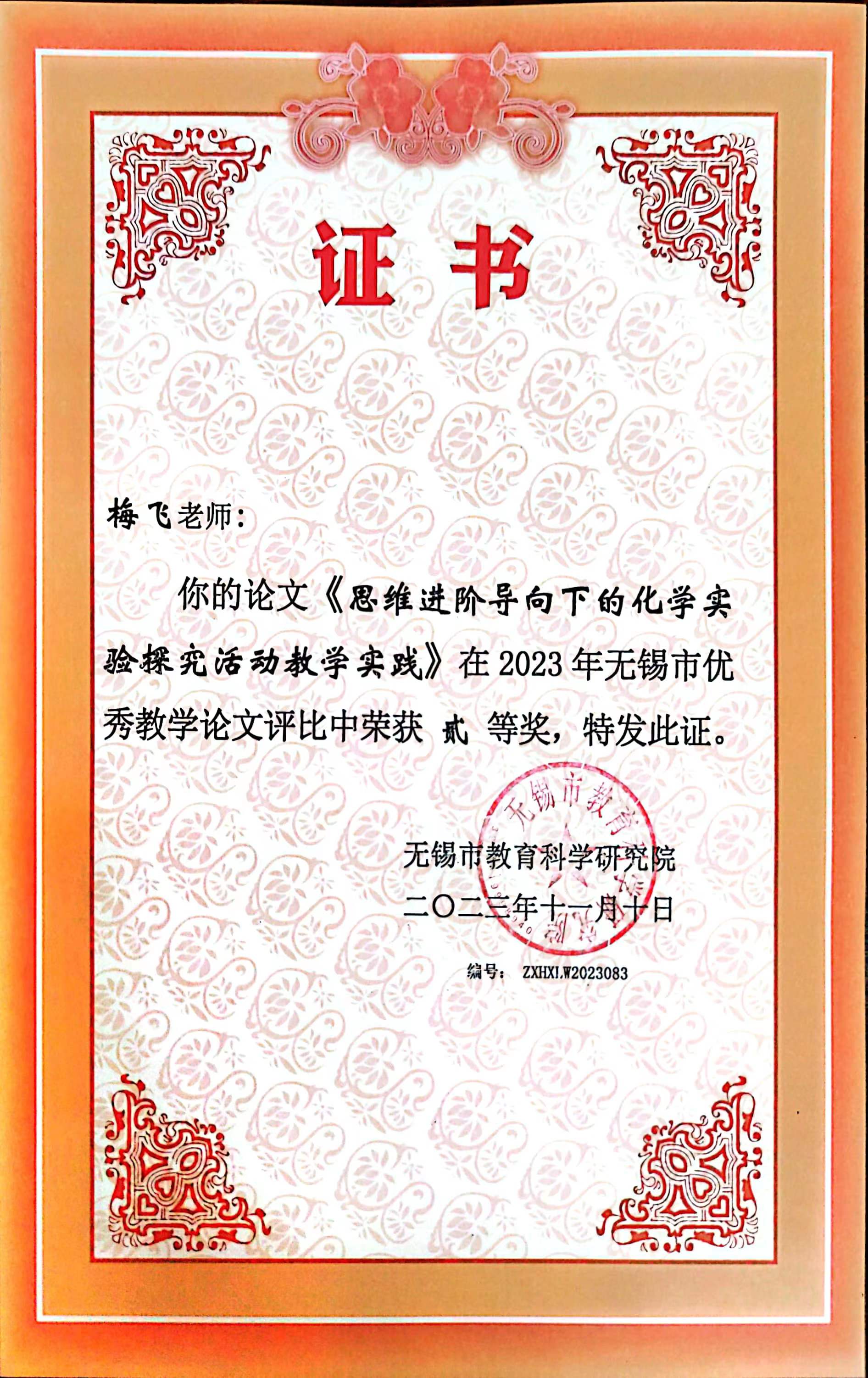评比部门:无锡市教育科学研究院