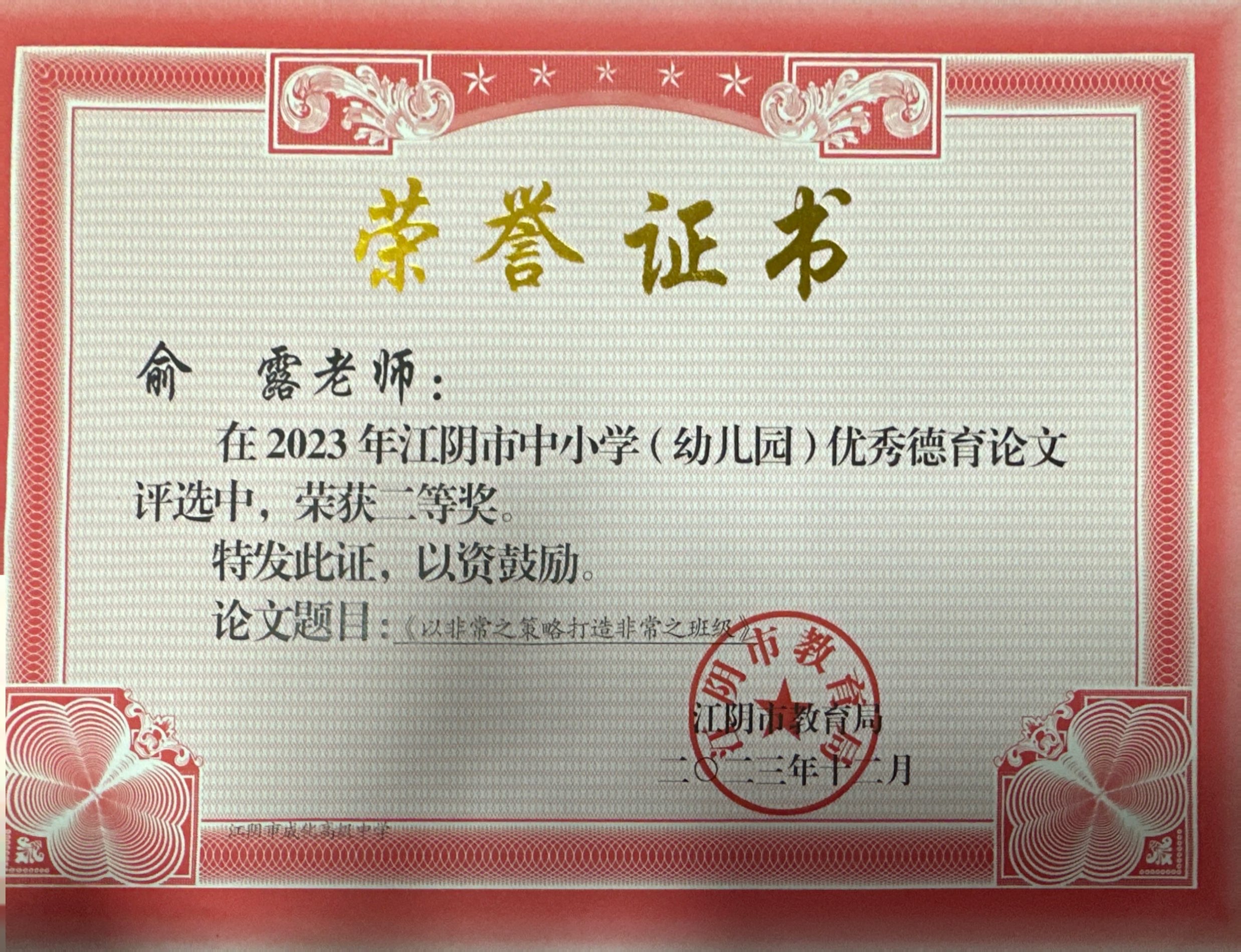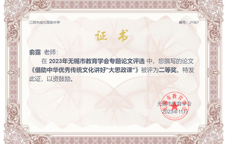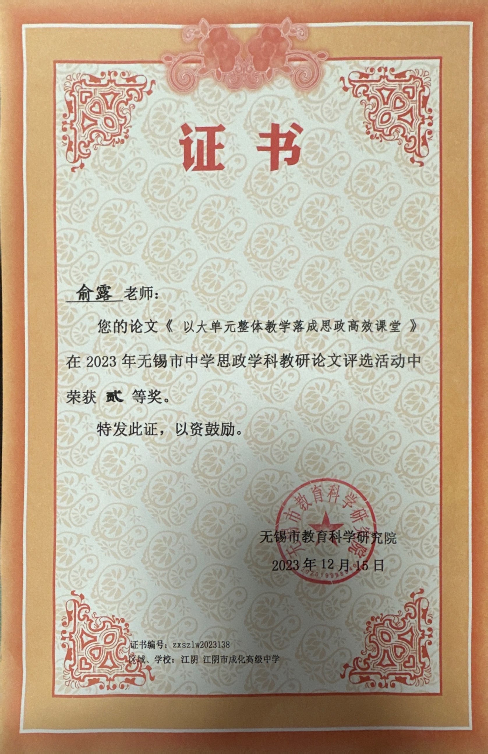 杨晓丽高中政治名师工作室成员俞露论文比赛获奖情况