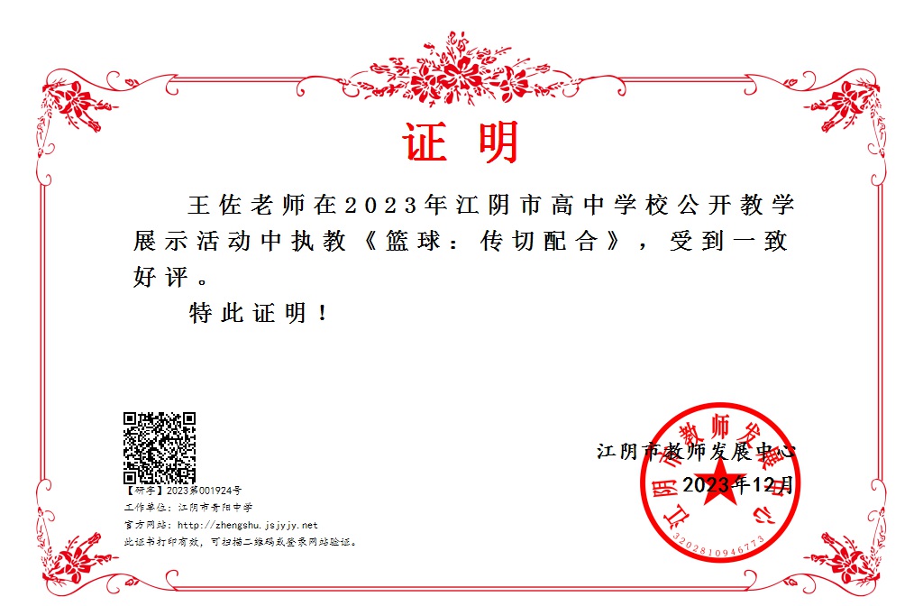 王佐老师在江阴市高中学校公开教学展示活动中执教《篮球:传切配合》,获一致好评