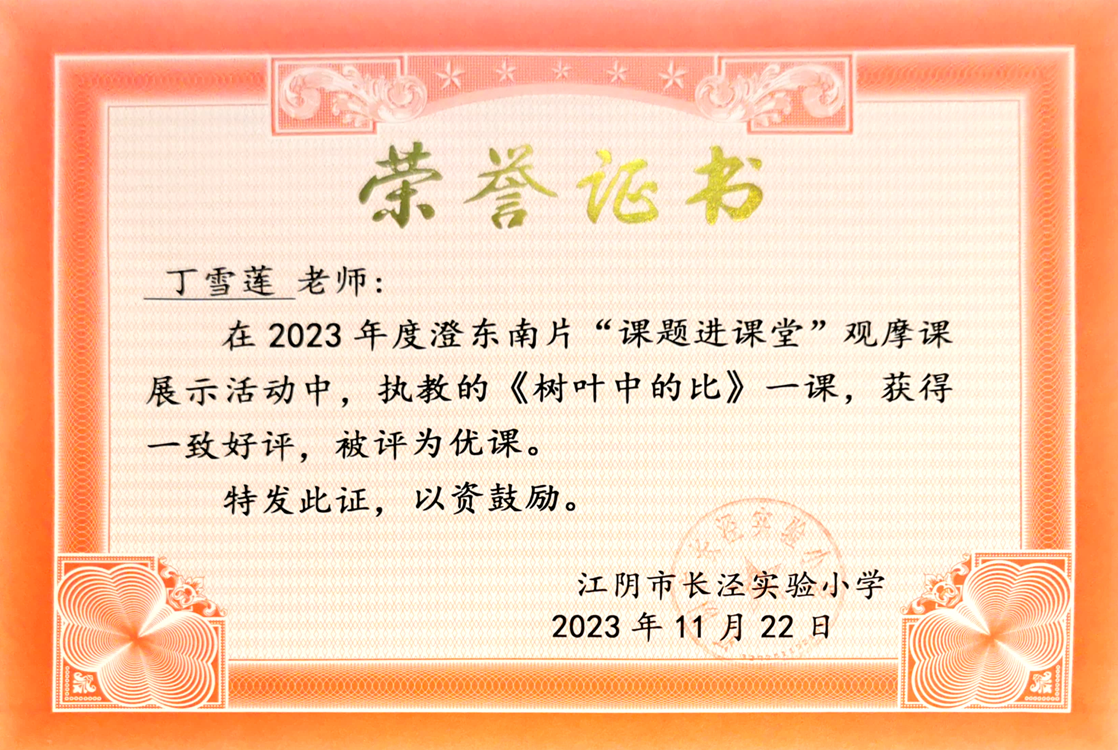 网站类目:教学设计 活动级别:片级 活动类别: 执教姓名:丁雪莲 所在单位:江阴市北漍中心小学 执教时间:2023-11-22 执教地点:江阴市北漍中心小学 执教内容:树叶中的比 参加对象:长泾片各小学数学骨干教师
