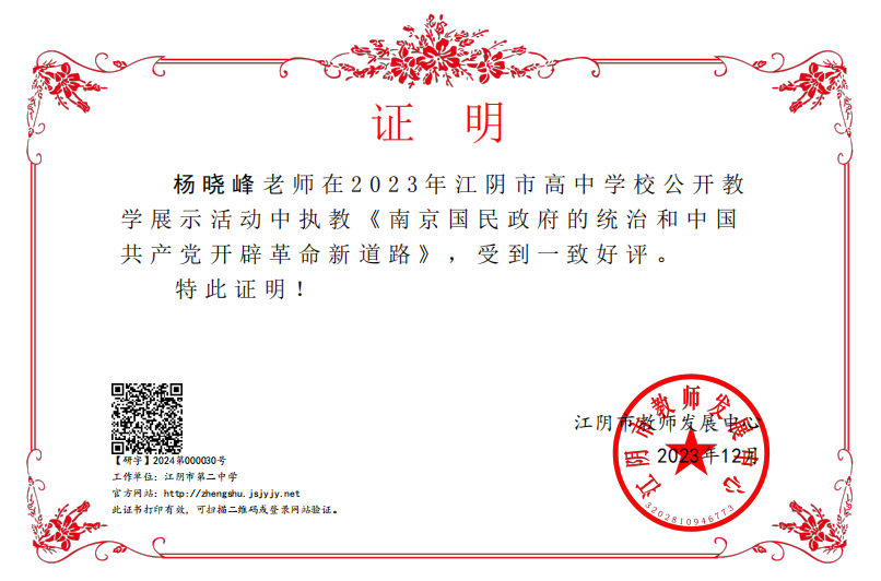 江阴市公开课证书《南京国民政府的统治和中国共产党开辟革命新道路》