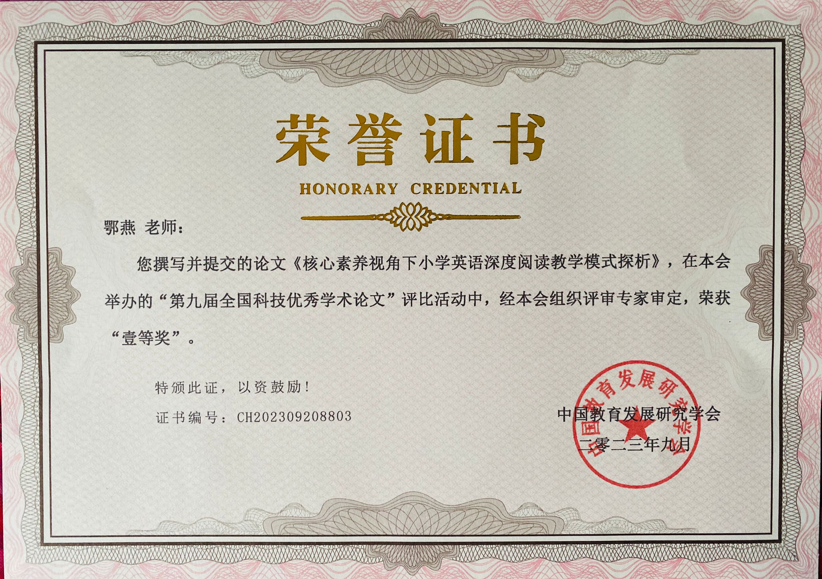 鄂燕老师论文获全国科技优秀学术论文一等奖~~