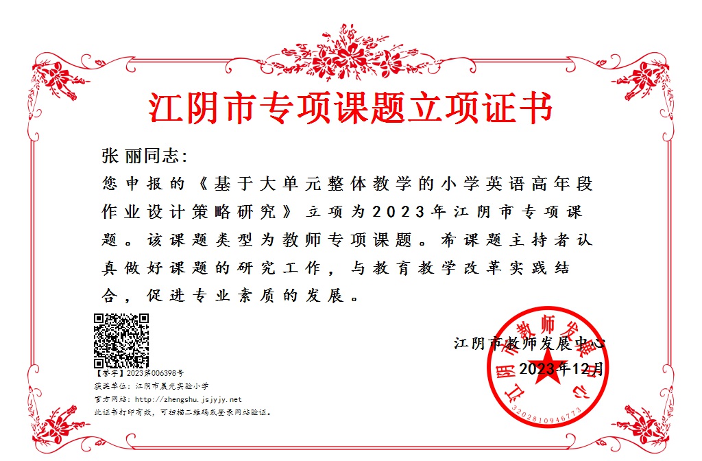 张丽老师在江阴市小学英语优秀学科论文评比中获一等奖~~