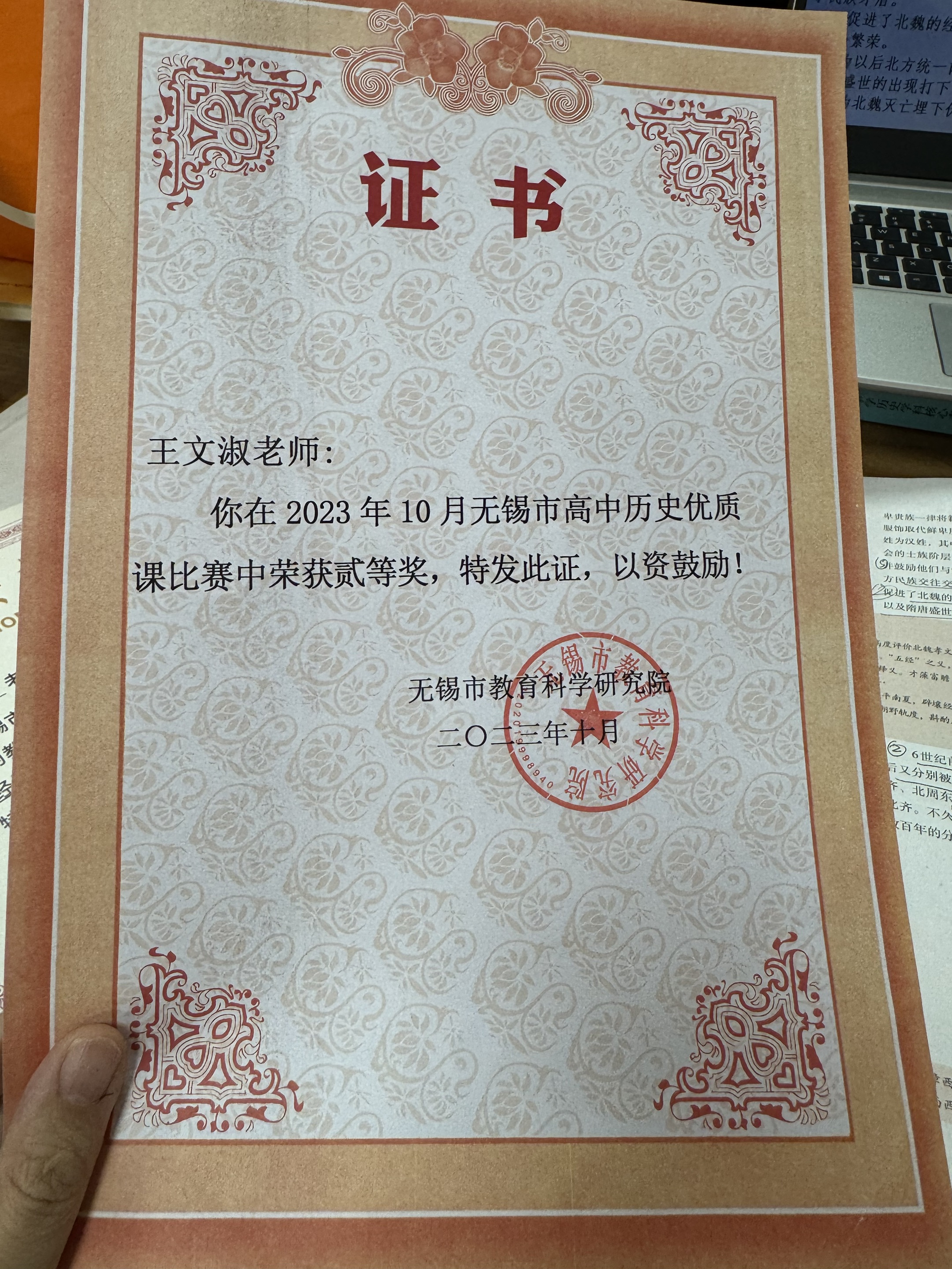 无锡市高中历史优质课比赛二等奖 2024-09-18