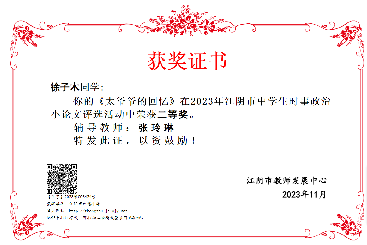 获奖类别:辅导学生获奖:政治小论文