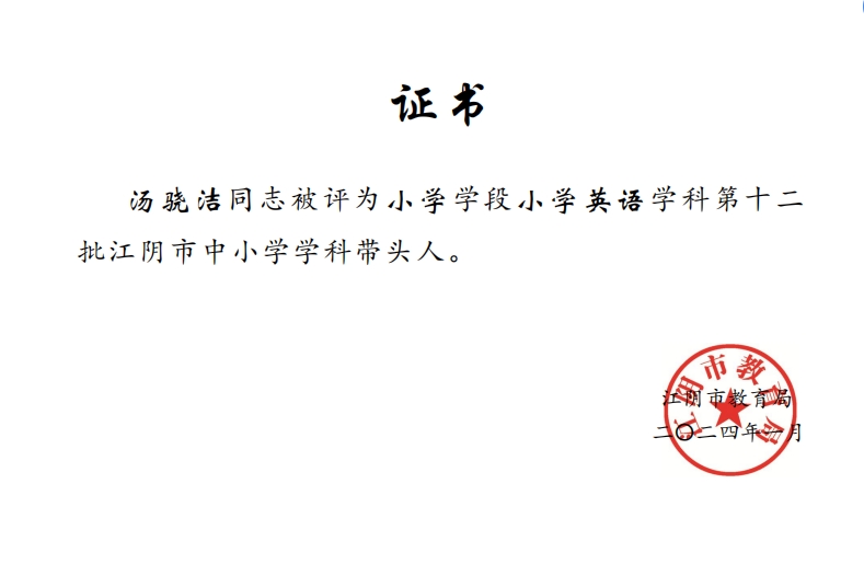 汤骁洁老师被评为江阴市学科带头人~~