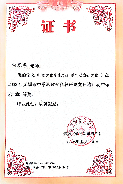 杨晓丽高中政治名师工作室成员何春燕论文获奖
