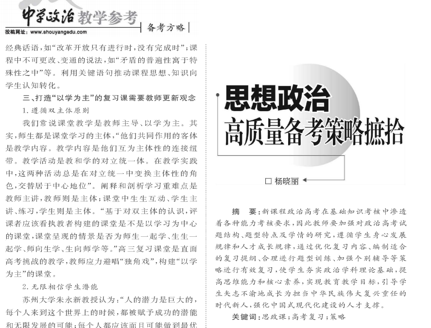 杨晓丽高中政治名师工作室主持人杨晓丽论文发表 2024-09-20