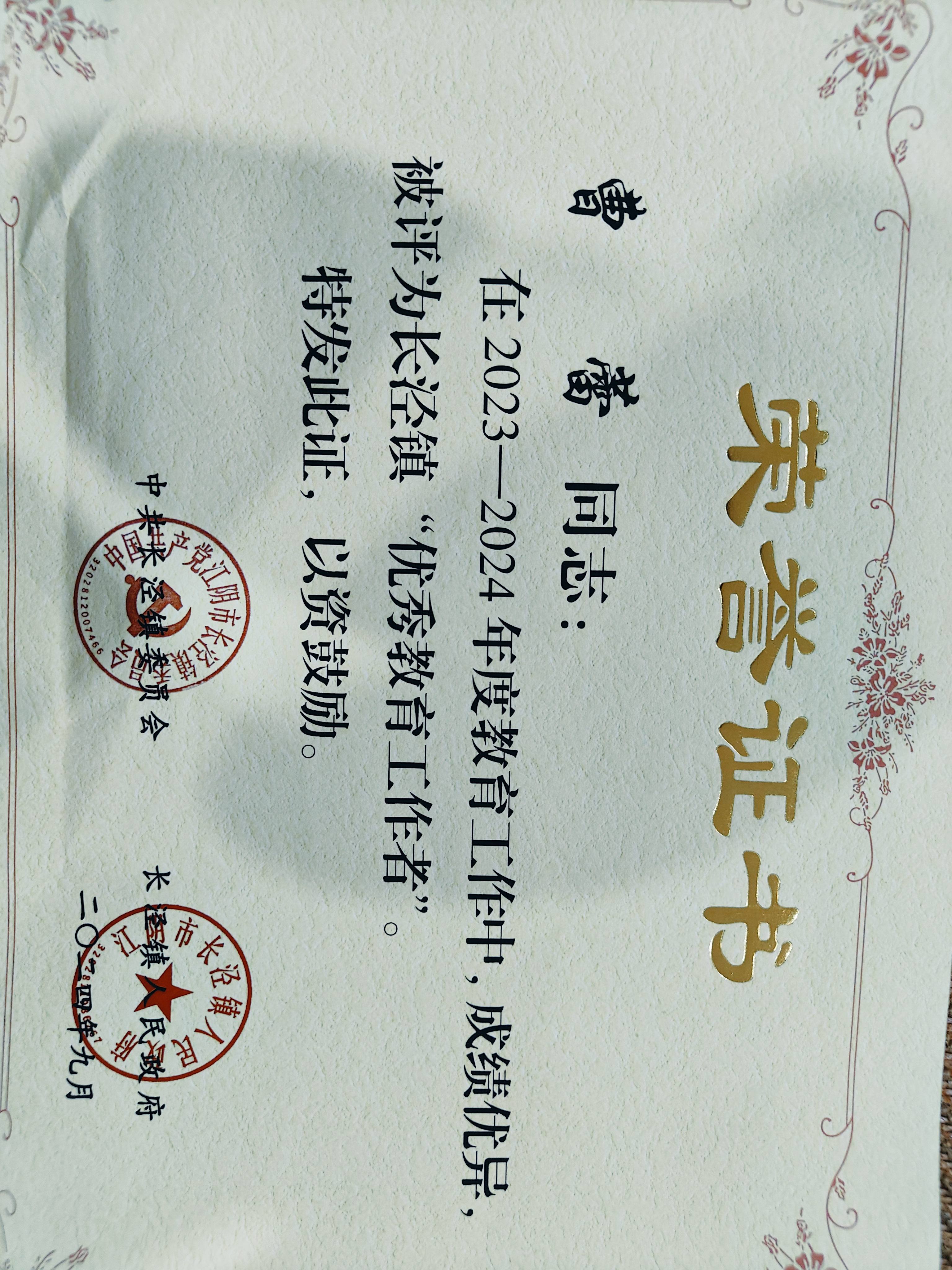 曹蕾长泾镇优秀教育工作者 2024-09-21