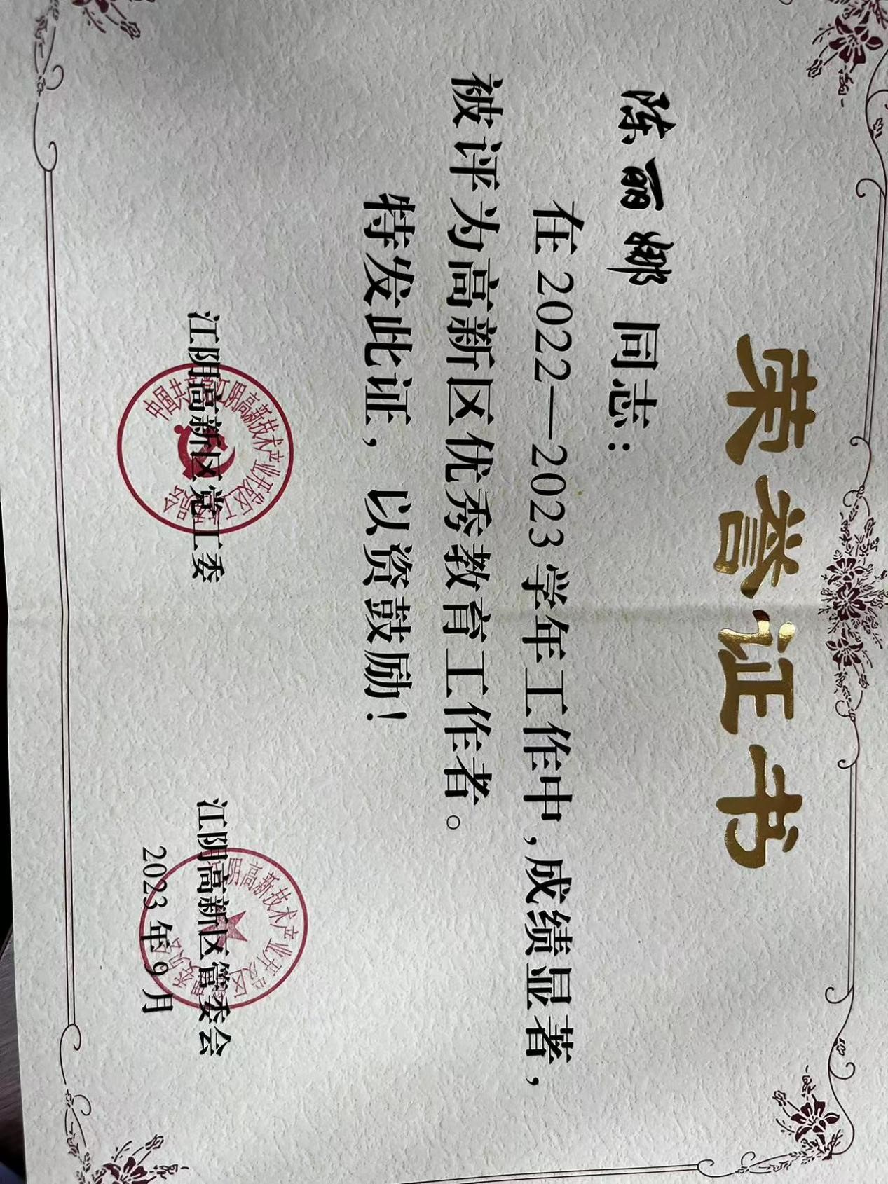 陈丽娜高新区优秀教育工作者 2024-09-21