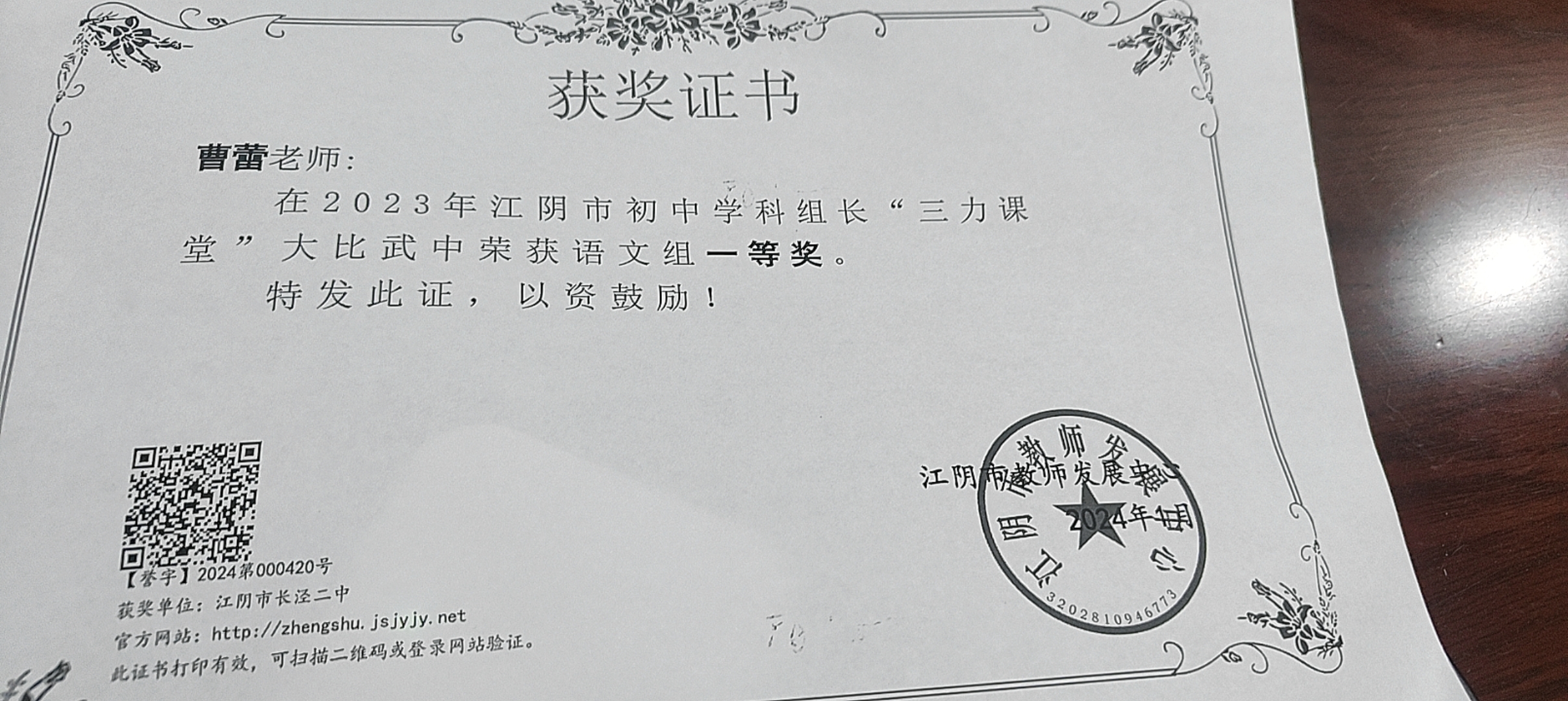 曹蕾江阴市学科组长大比武一等奖 2024-09-21