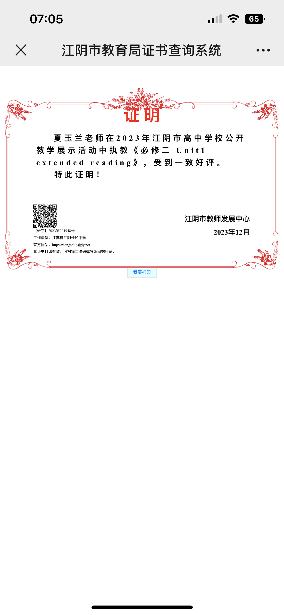 杨芬老师在优质课比赛中获得二等奖