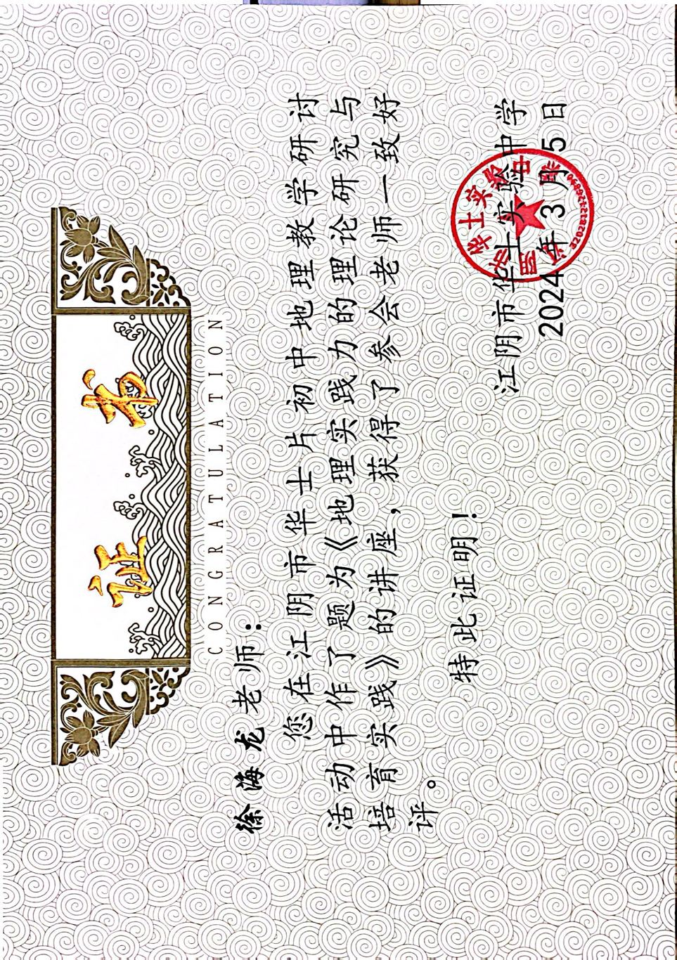 徐海龙老师参加江阴市华士高级中学教研活动作学术讲座
