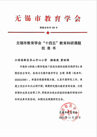 江阴市顾海英德育名师工作室研究项目3:积极心理学视域下家校沟通的创新实践研究