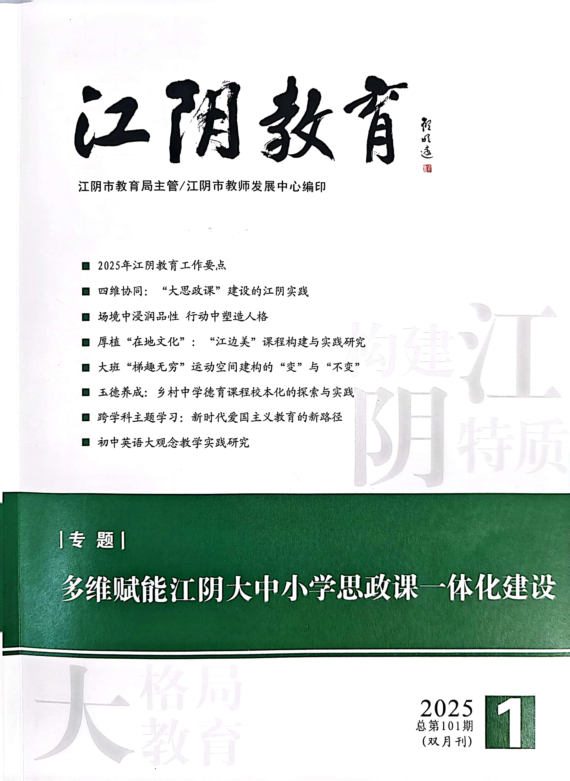 顾宇佳老师的论文《放手 支持 助推 ——以班本课程“迎幼生日会”为例》发表于江阴教育