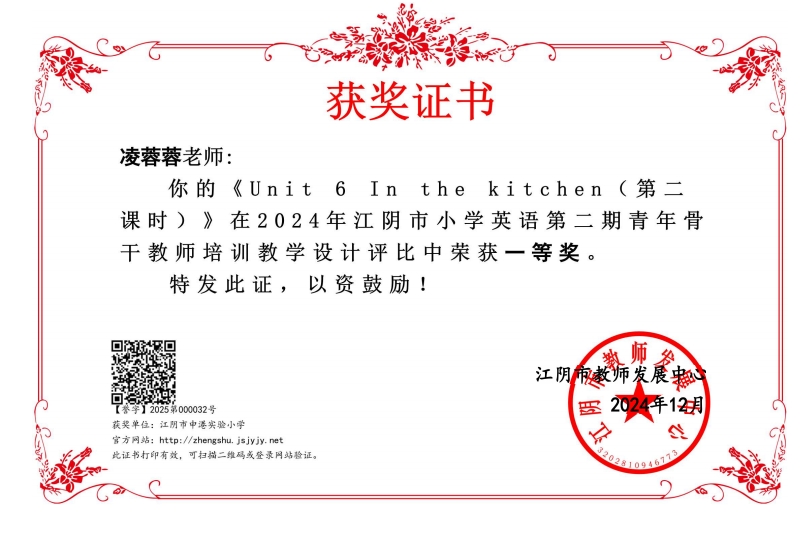 凌蓉蓉获江阴市小学英语青年骨干教师教学设计评比一等奖~~