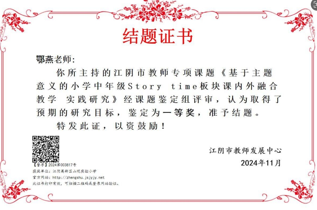 鄂燕老师江阴市课题顺利结题