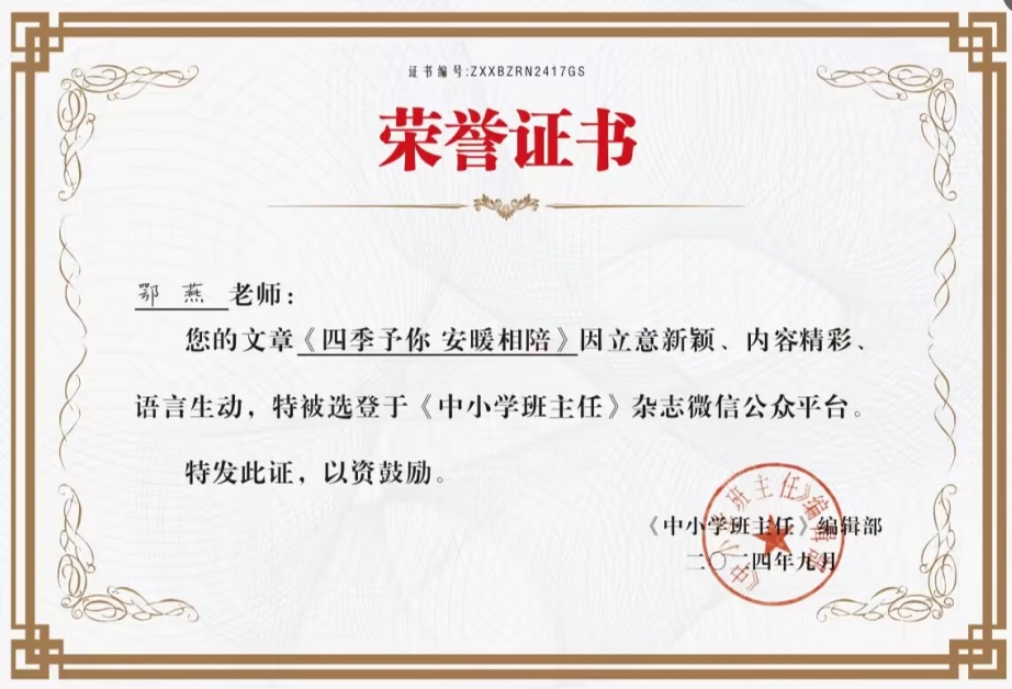 鄂燕老师论文选登于《中小学班主任》杂志~~