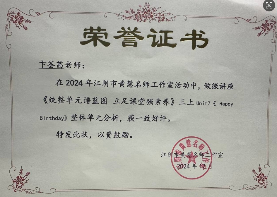 卞荟茜老师在江阴市首批观察工具与循证教研案例评比活动中获二等奖~~