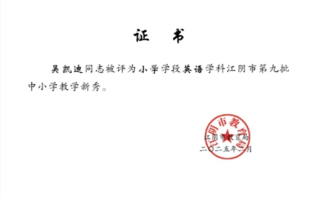 吴凯迪老师获评江阴市教学新秀