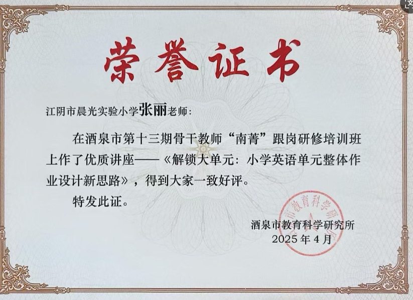 张丽老师在酒泉市骨干教师