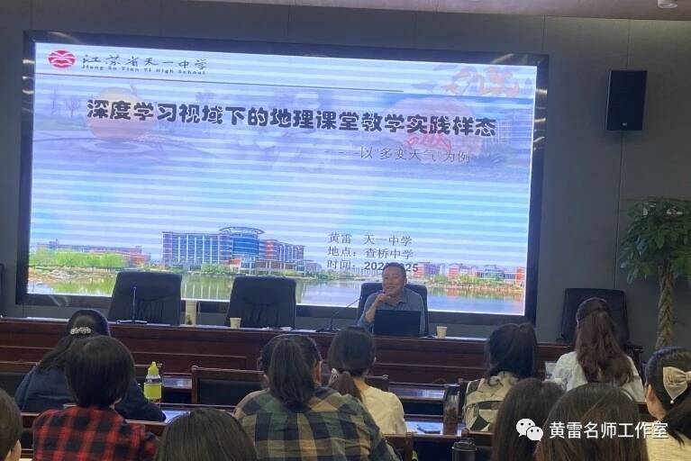 10月25日,无锡市黄雷名师工作室,以“丰富教学理念”视域下的深度学习研究、基于学生社团的地球科学校本课程开发研究为主题,和江阴市张蕾名师工作室全体成员在锡山区查桥中学展开了联合教研活动。本次教研活动由查桥中学的姚丹烨老师和江阴初级中学的陈雪琴老师开展同课异构,课题为《多变的天气》,然后由工作室成员谈对两节课的理解,最后由江阴市教师发展中心教研员张蕾和江苏省天一中学的特级教师、正高级教师黄雷老师开展评课讲座。