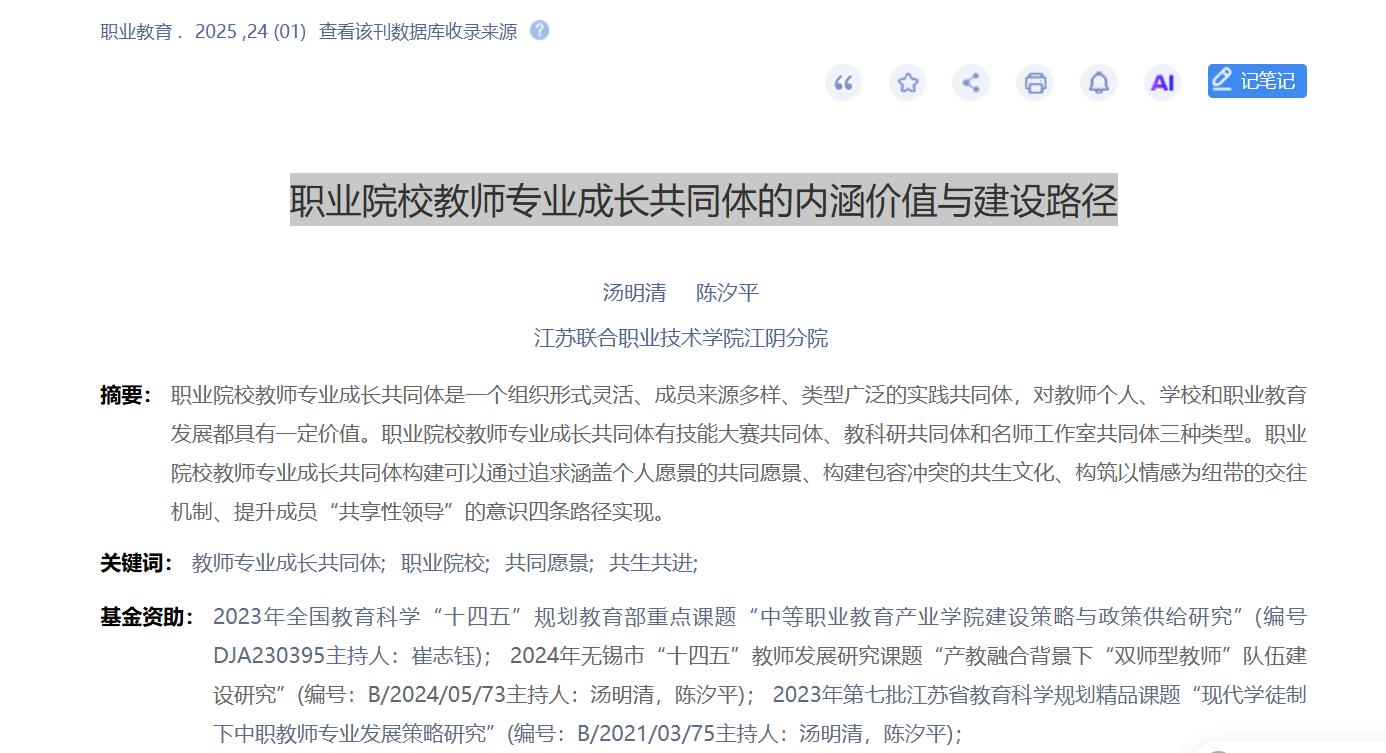 职业院校教师专业成长共同体的内涵价值与建设路径 2025-08-26