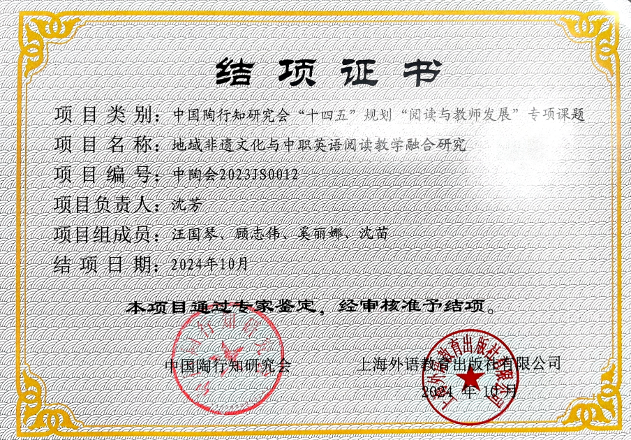 课题名称:地域非遗文化与中职英语阅读教学融合研究